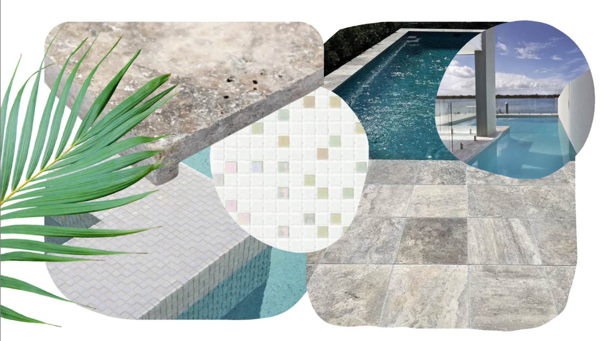 Coping: Tumbled limestone. Gently worn, sun-soft and naturally at home against sandy toes and salt air.